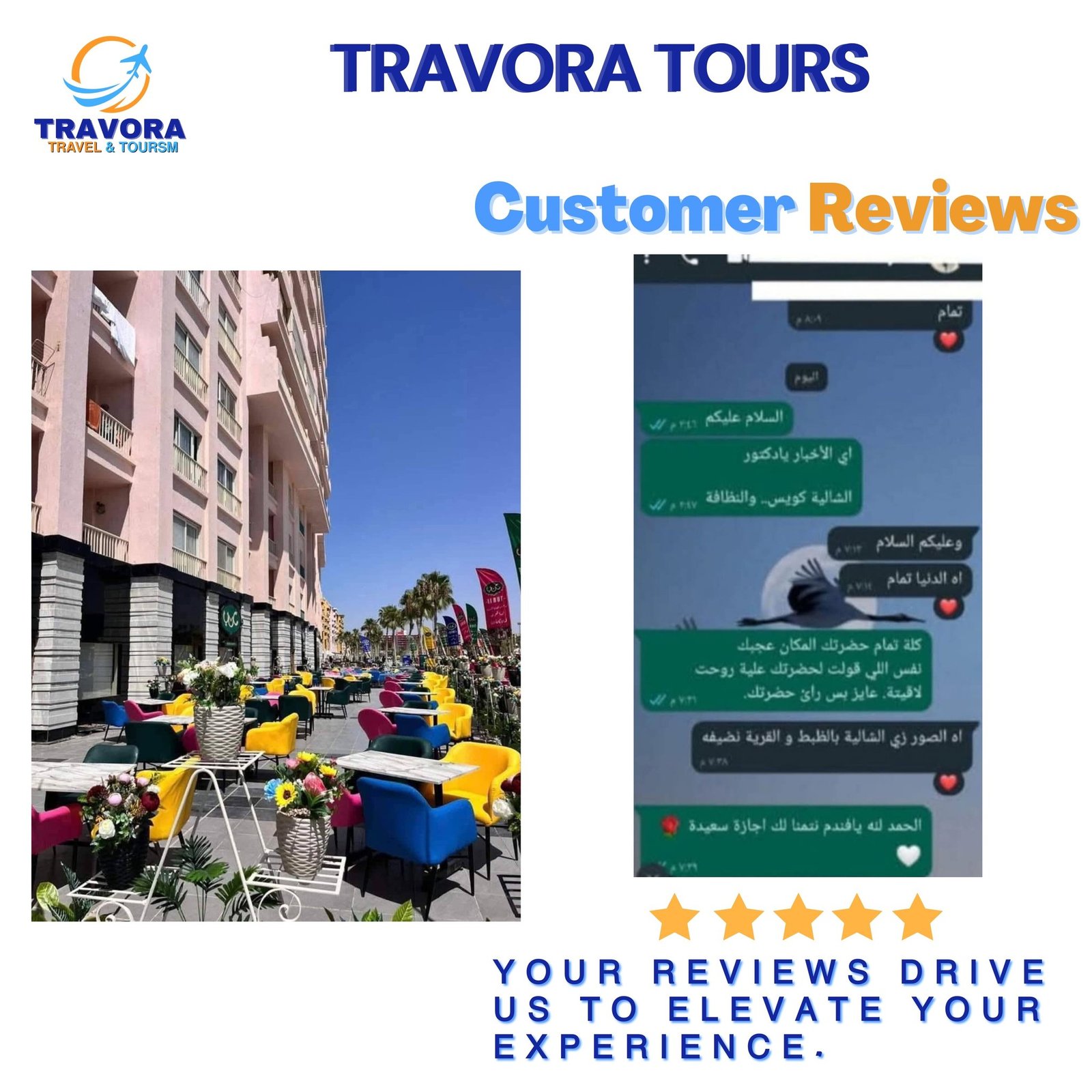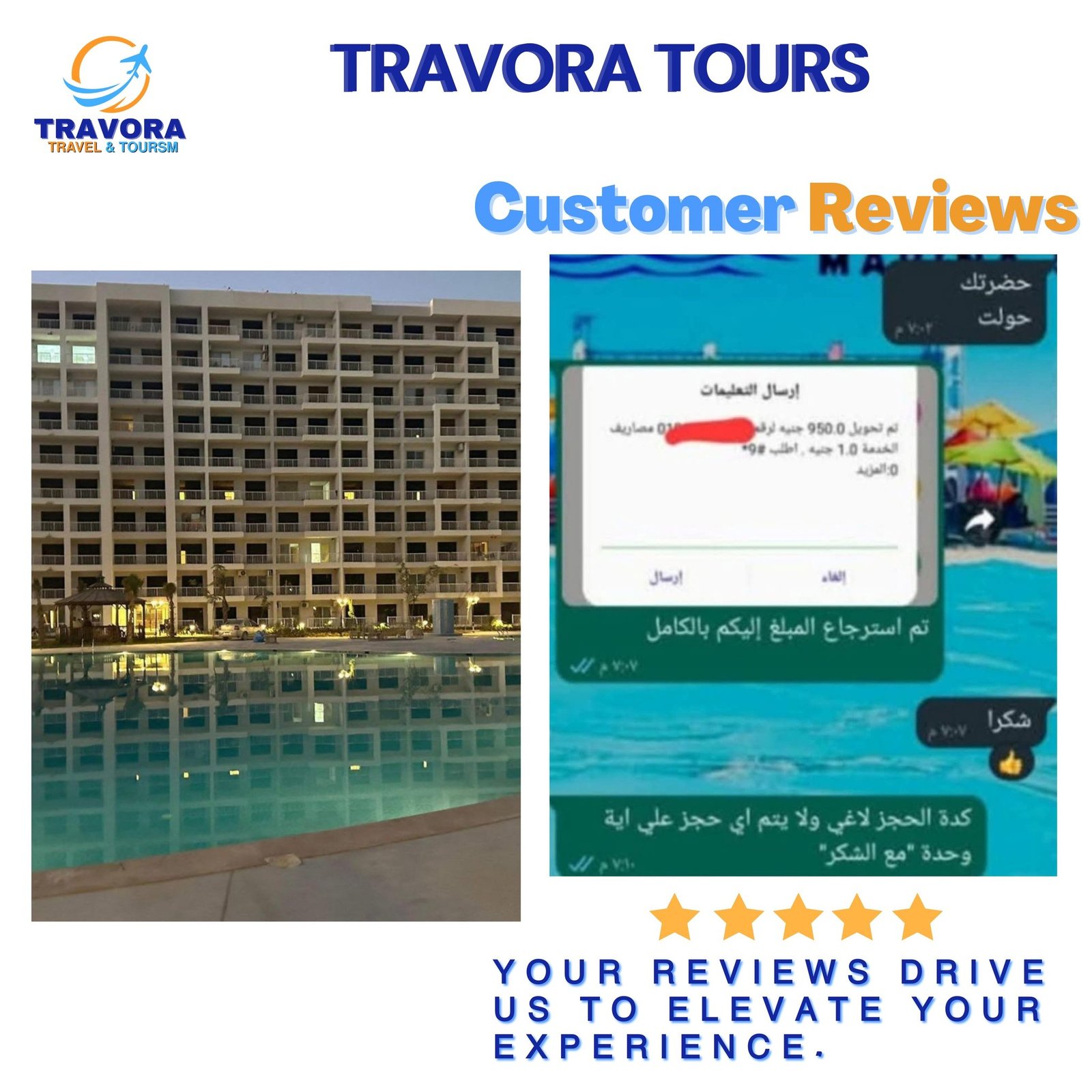 فريق ترافورا معك قبل الحجز وأثناء الإقامة وبعدها. لو ظهرت أي مشكلة، نحن موجودون لحلها فورًا حتى تستمتع بإجازتك بدون توتر.