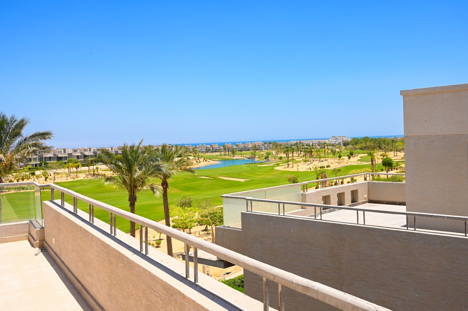٣ غرف دوبلكس⏫ معاه روف بيبص من البلكونة علي البحر، والفندق والجولف🏊♂️🌴 القرية شاطئ رملى ممتاز طريق السويس