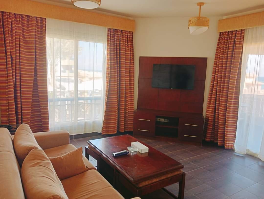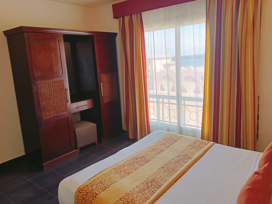 غرفتين نوم ٢ حمام سي فيو بحر وبيسين مكيف بالكامل ومجهز فرش فندقي