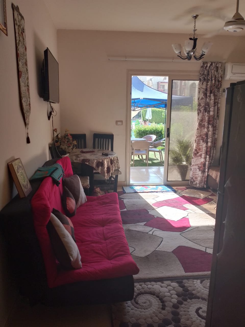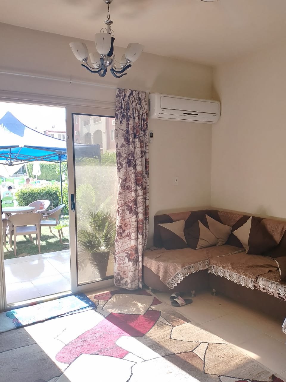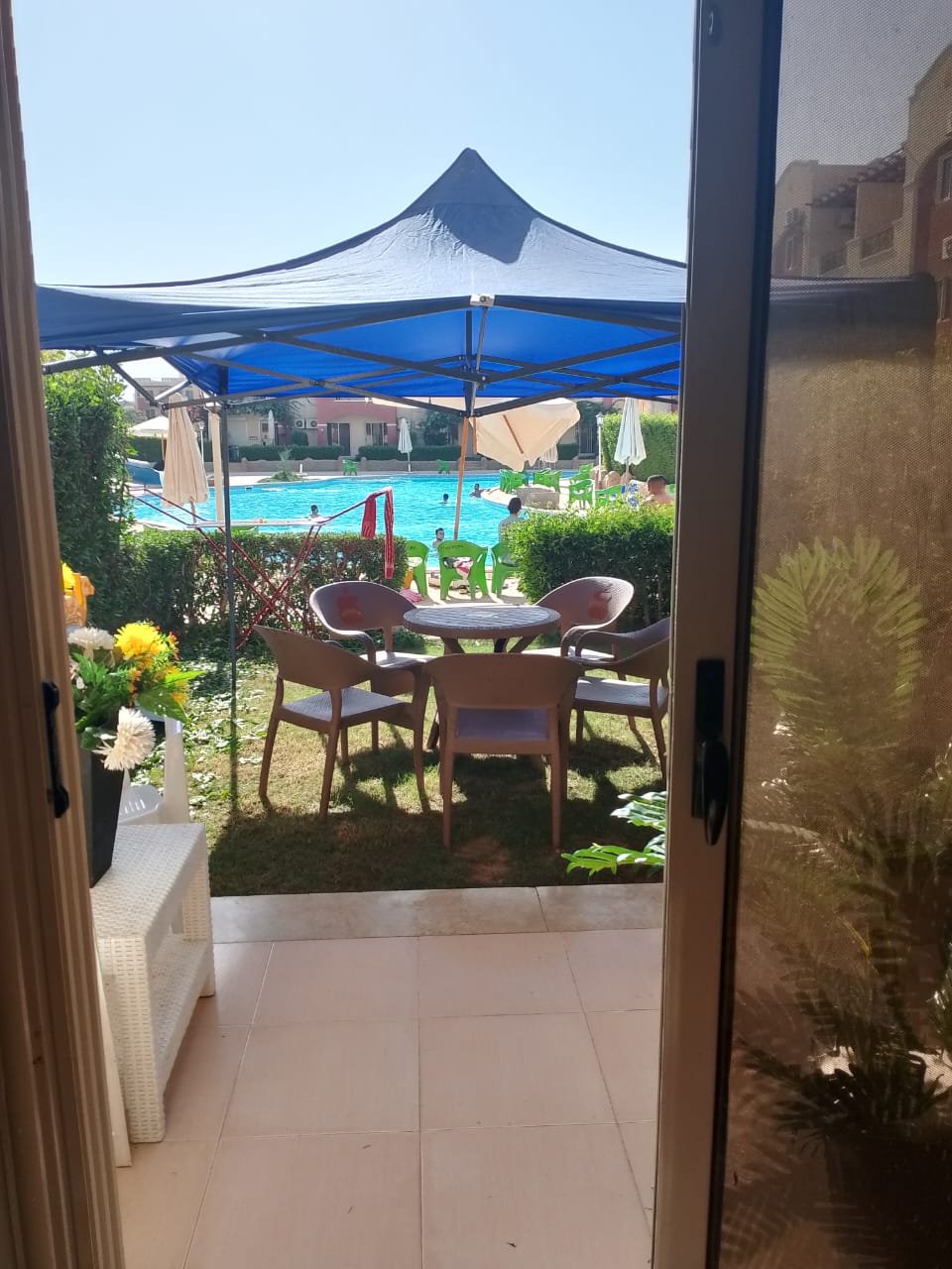 شاليه دور أرضي بجنينة🌴 ١ غرفة نوم مكيفة🫧 حمام و مطبخ و ريسيبشن🚿🧇 مجهز ومكيف بالكامل فرش راقي جدا يطل على حمام السباحة مباشرة 🏊♂️🏊♂️