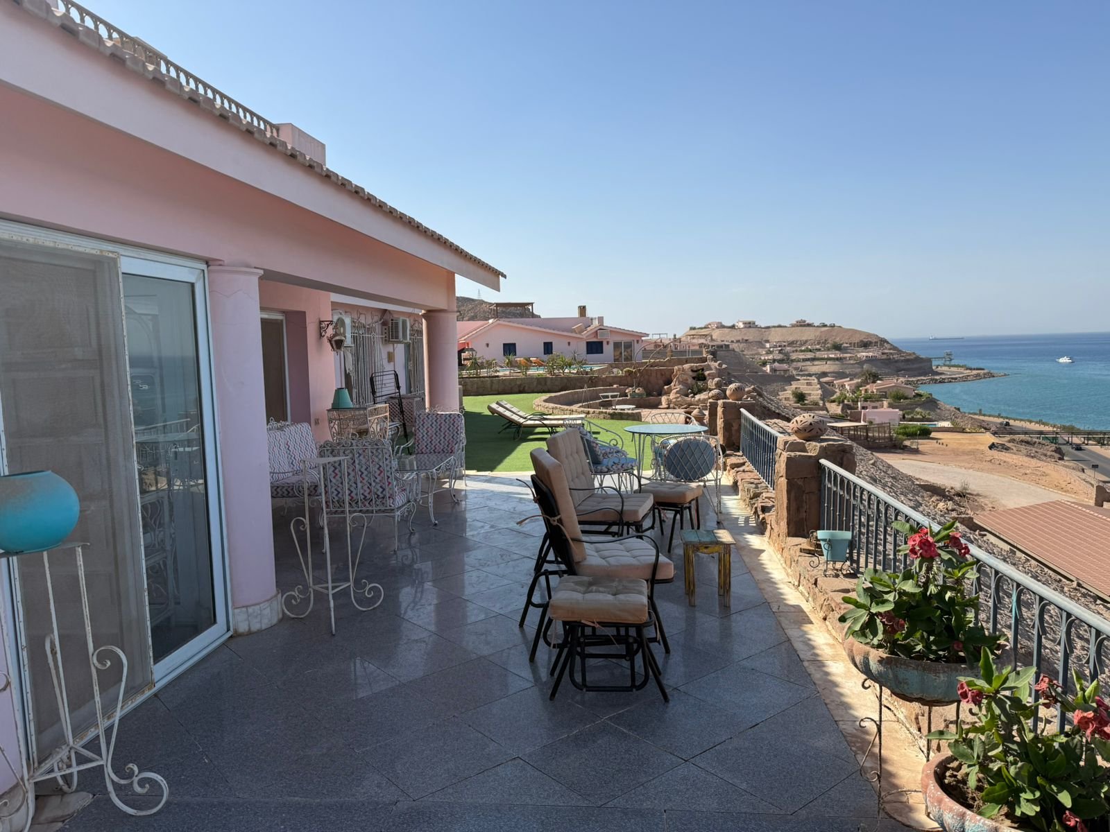 بجانب بورتو السخنه مباشره فيلا 3 غرف نوم و 3 حمام حمام سباحه مشترك مع فيلا أخري فالاغلب المالك مش بيجي سي فيو زيها زي بورتو بنعدي للبحر الطريق أو بالكوبرى